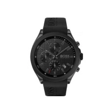 The NEW HUGO BOSS VELOCITY 1513716 is a men's watch featuring a black dial and silicone strap. Key specifications include a stainless steel case, 44mm case width, buckle fastening, quartz...