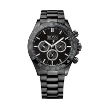 Hugo Boss 1512961 Stainless Steel Ikon Black Men's Watch features a 44mm black stainless steel case, black stainless steel bracelet strap, 24-hour dial, multiple hands, and is water-resistant up to...