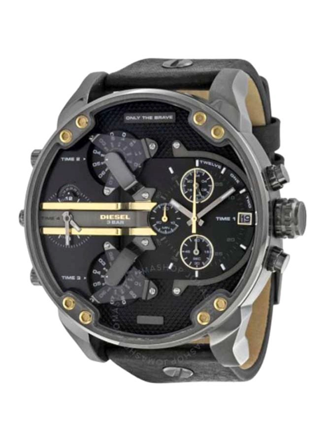 Men's Mr. Daddy 2.0 Round Shape Leather Band Analog Wrist Watch 57 mm - Black - DZ7348