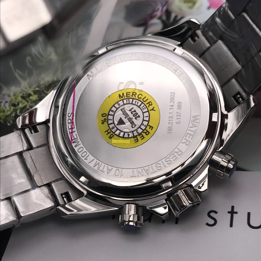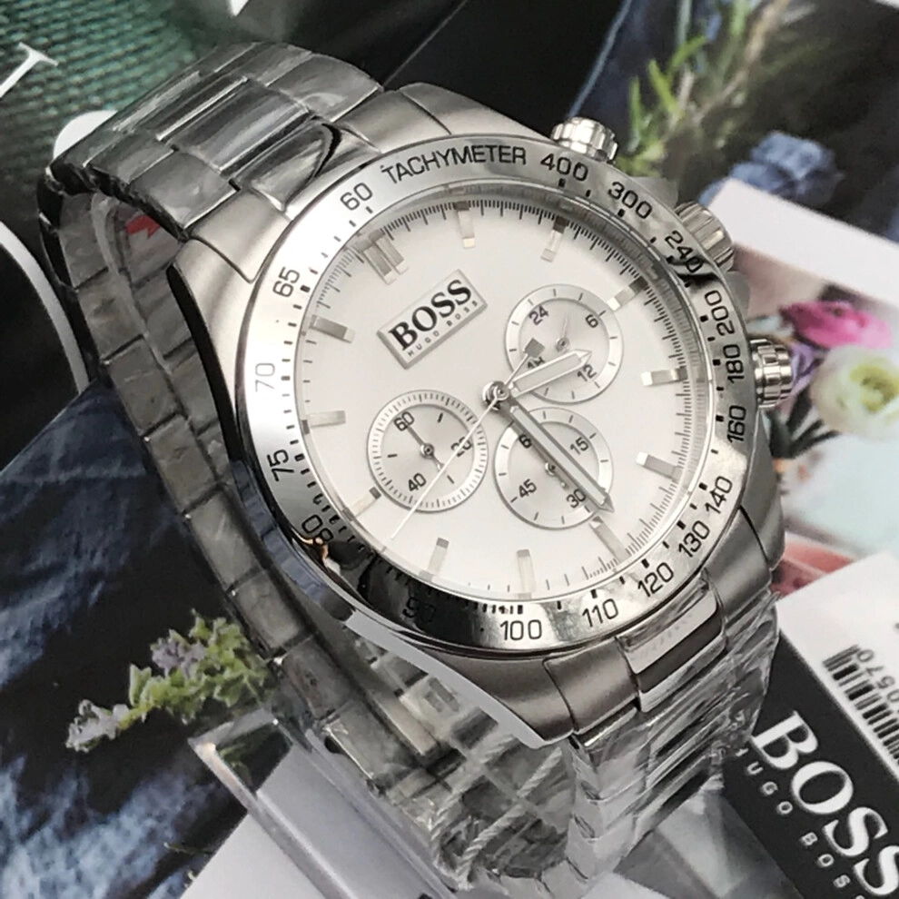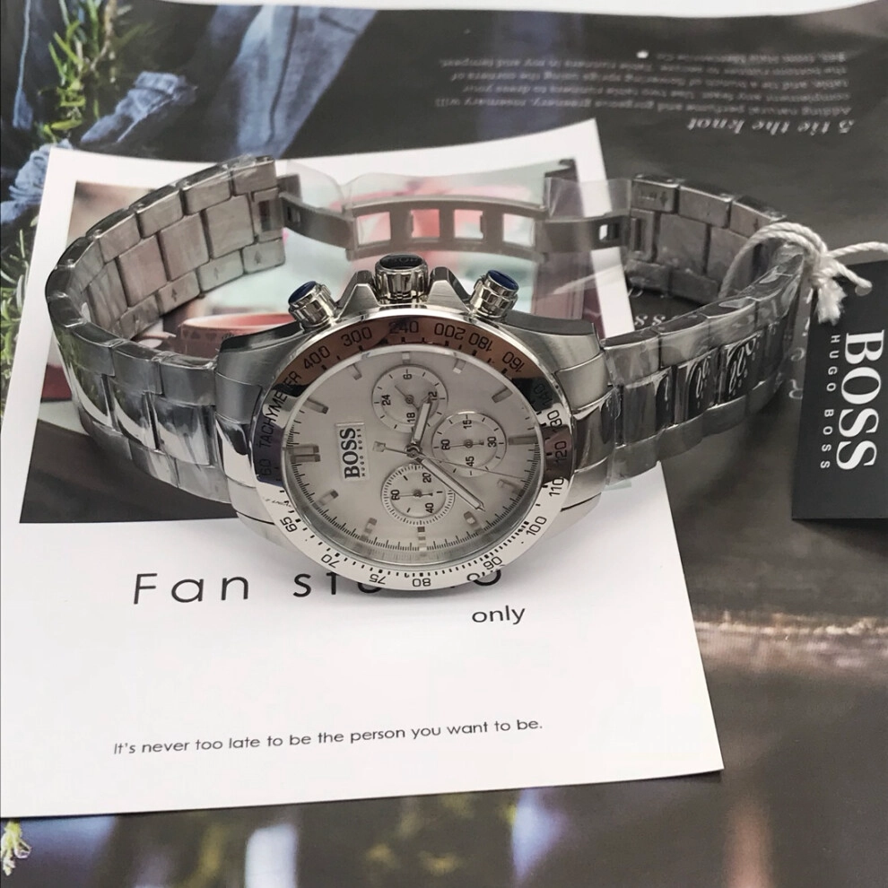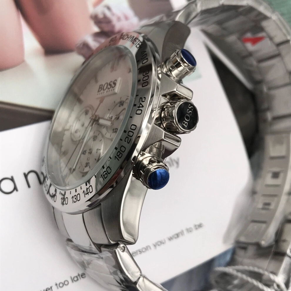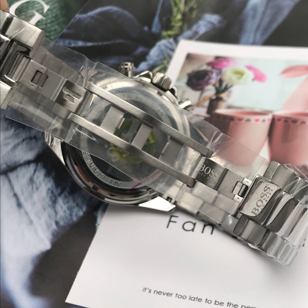 The new BOSS steel band men's multi-functional quartz watch, business casual, party and sports, fashionable and versatile, mineral-strengthened glass surface, 50 meters waterproof for daily use, diameter 42mm