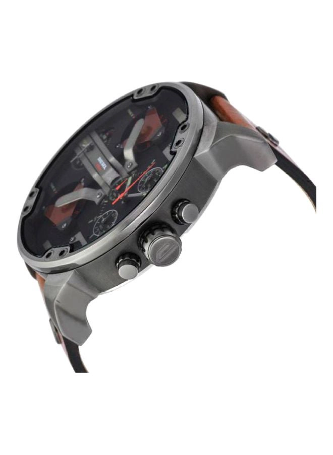 Men's Mr. Daddy Round Shape Leather Band Chronograph Wrist Watch 57 mm - Brown - DZ7332