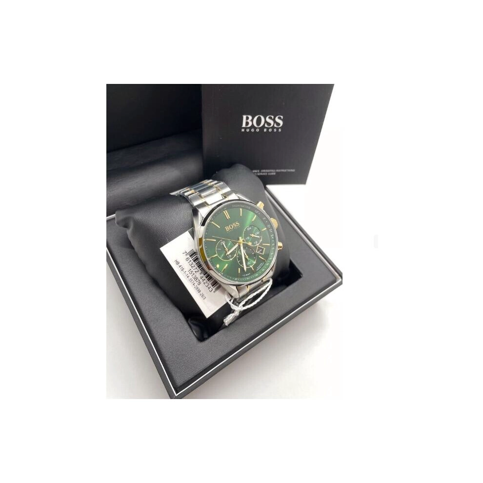 Authentic Hugo Boss Champion HB1513878 featuring a striking silver, gold & green color combination. This sophisticated men's timepiece combines luxury design with precision engineering.
