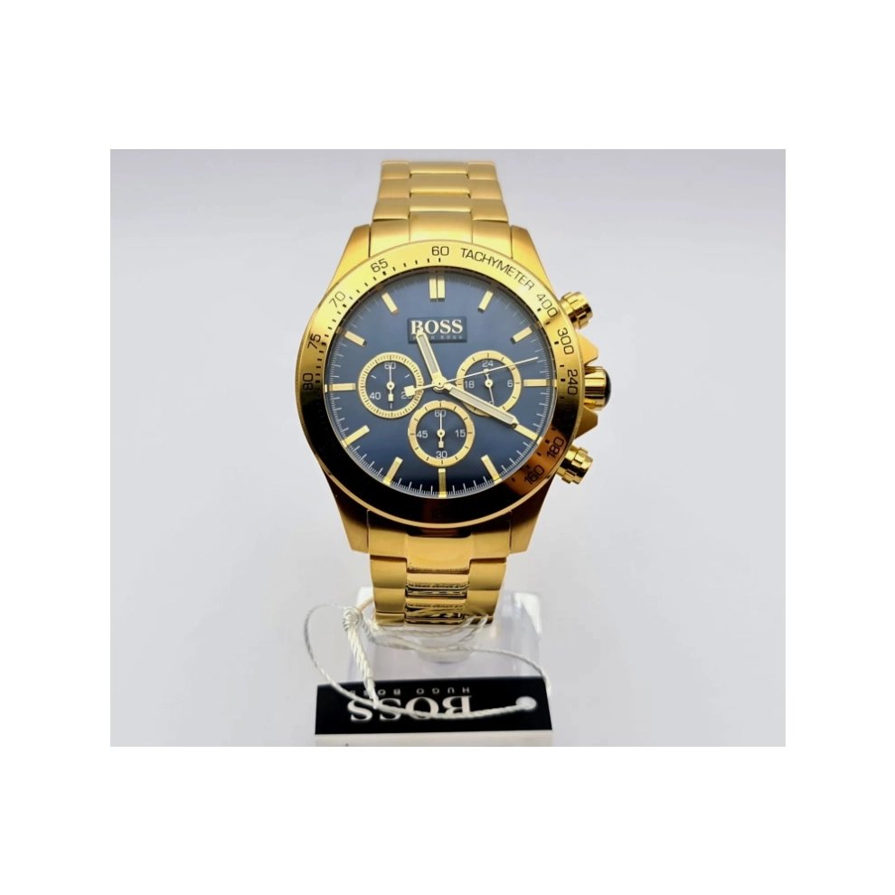NEW HUGO BOSS 1513340 MENS IKON STEEL GOLD BLUE DIAL CHRONOGRAPH WATCH Description