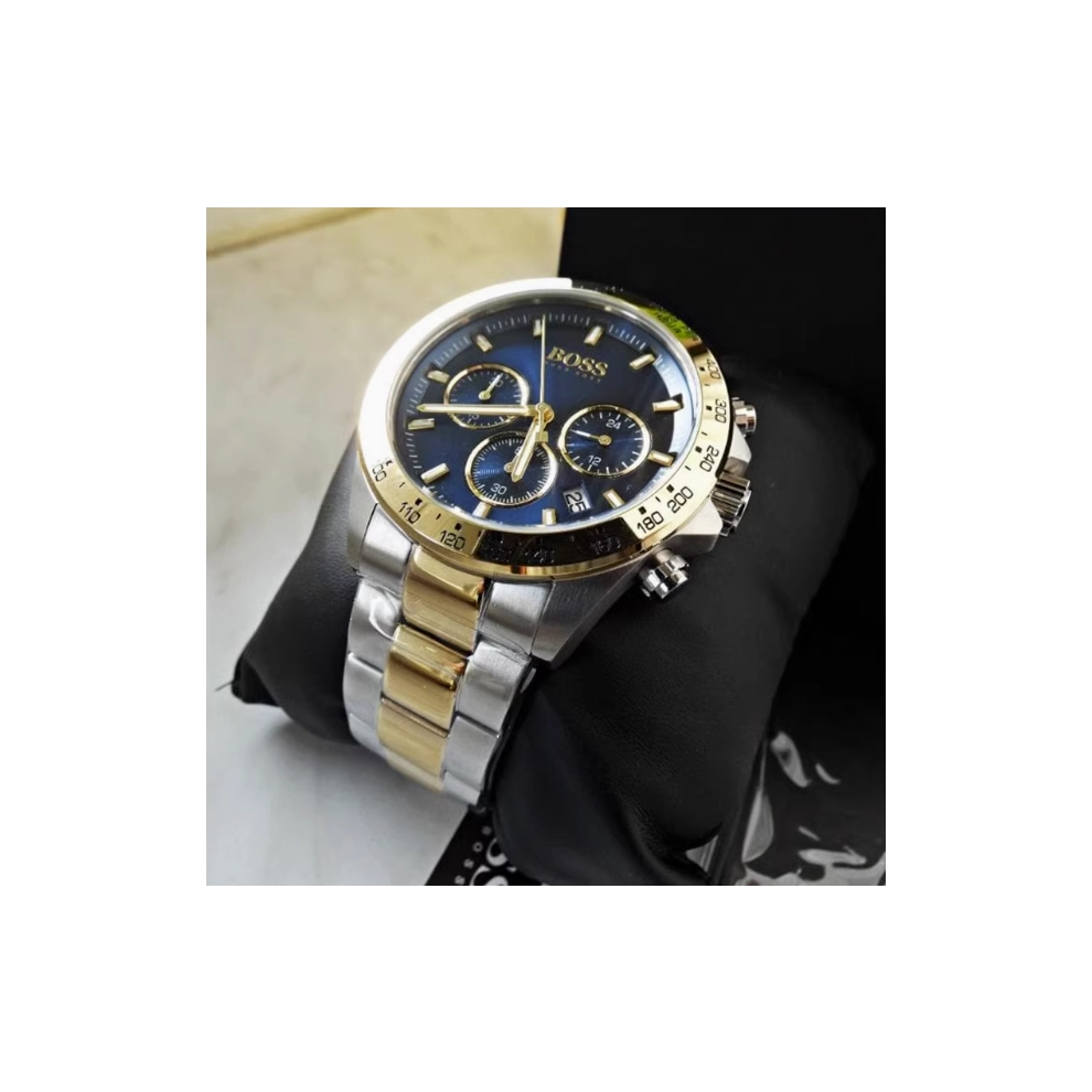 A stainless steel bracelet gives this stunning timepiece great durability and ensures the watch will survive whatever life throws at it. The bold blue face set in a silver body will be sure to catch the eye, and those gold highlights, including the famous Hugo Boss logo that exudes masculinity and sophistication, complete the look.