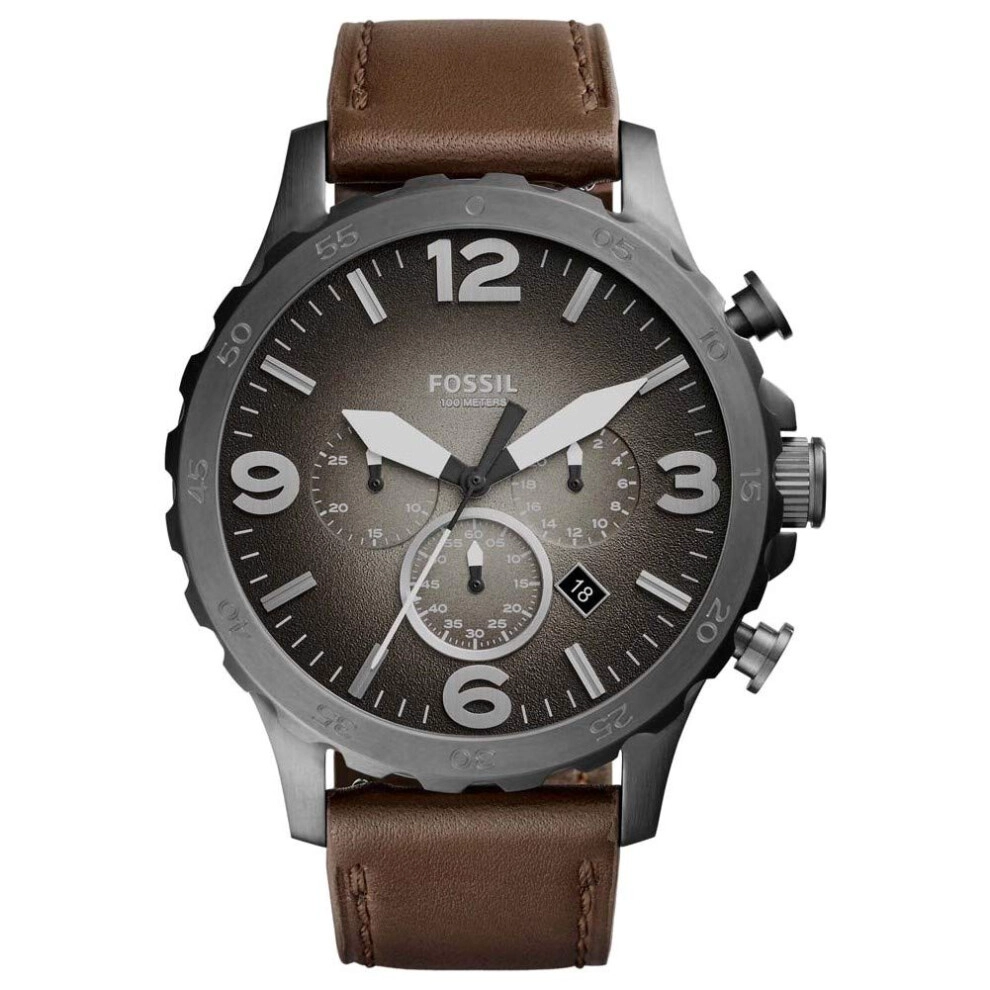 Fossil Men's Nate Quartz Stainless Steel and Leather Chronograph Watch - Smoke Brown (Model: JR1424)