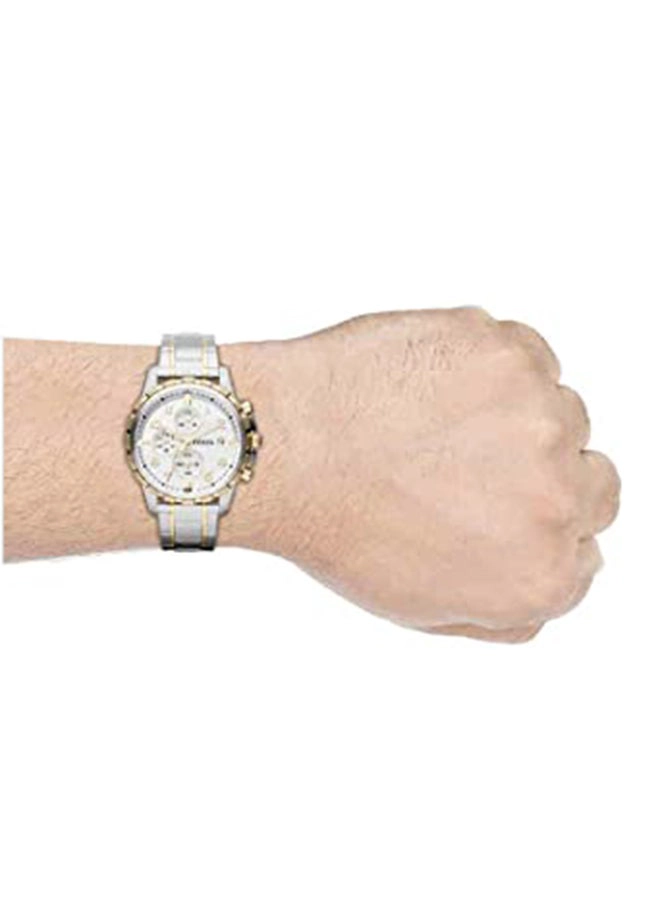 The Fossil Dean Chronograph represents the perfect fusion of classic design and modern functionality. This sophisticated timepiece features a 45mm case with an elegant silver and gold finish, making it an ideal choice for the modern gentleman who appreciates both style and precision.
