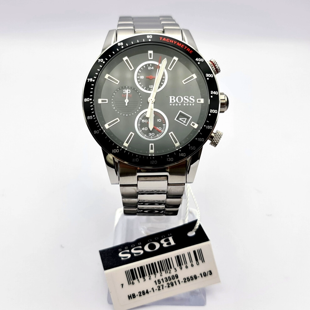NEW GENUINE HUGO BOSS 1513509 RAFALE SILVER & BLACK TONE MEN'S WATCH