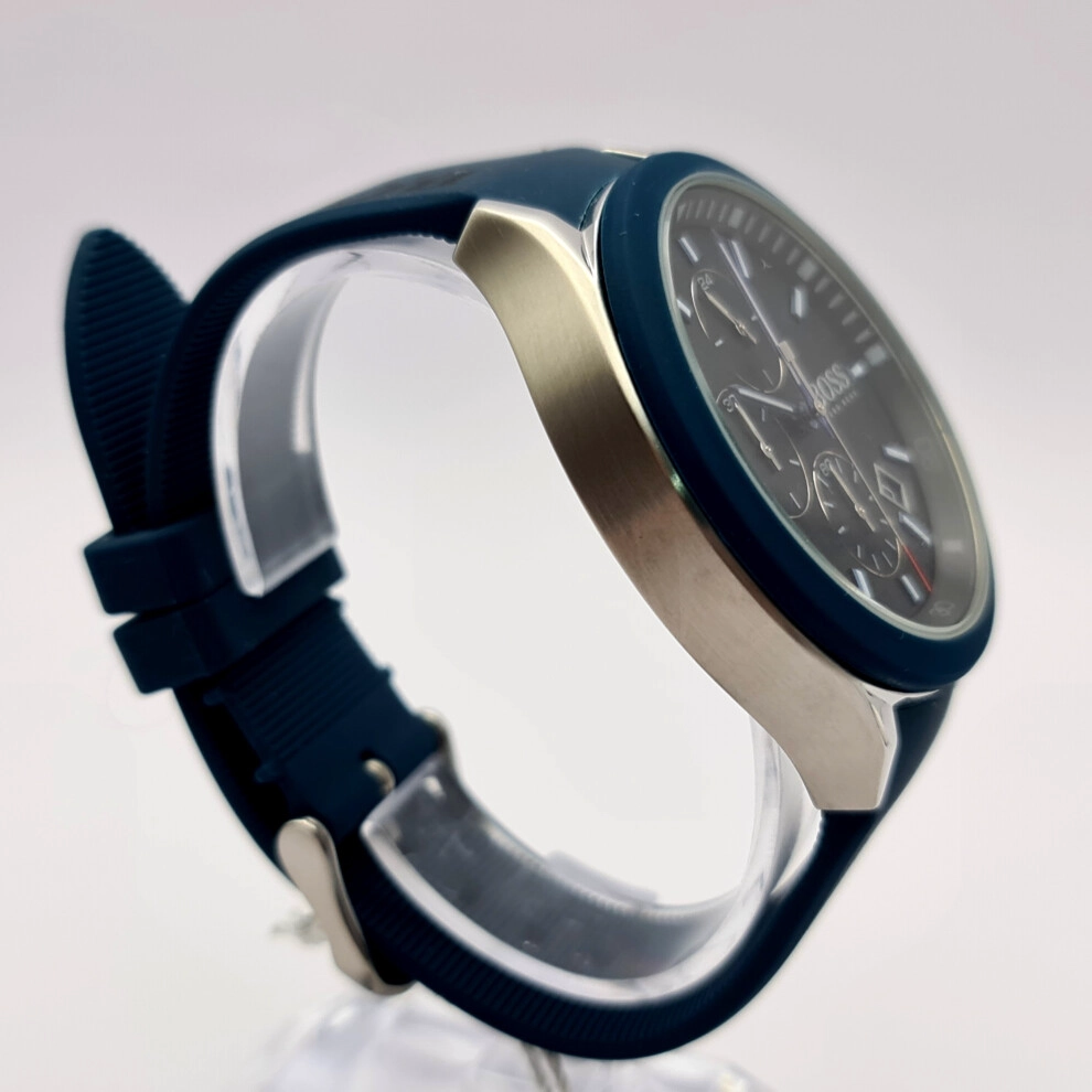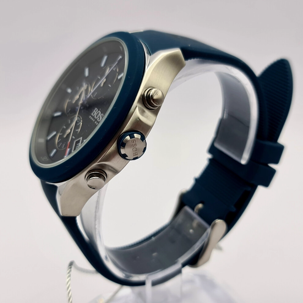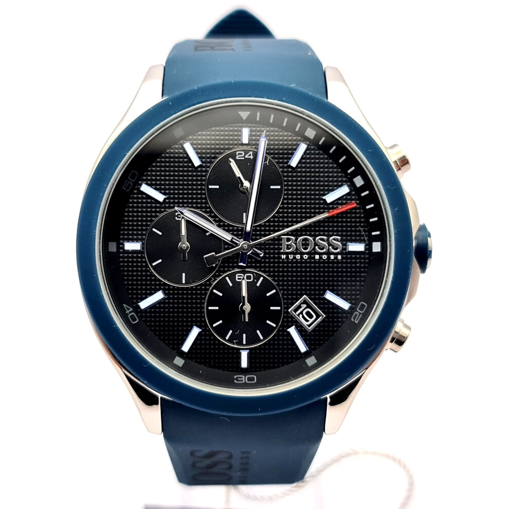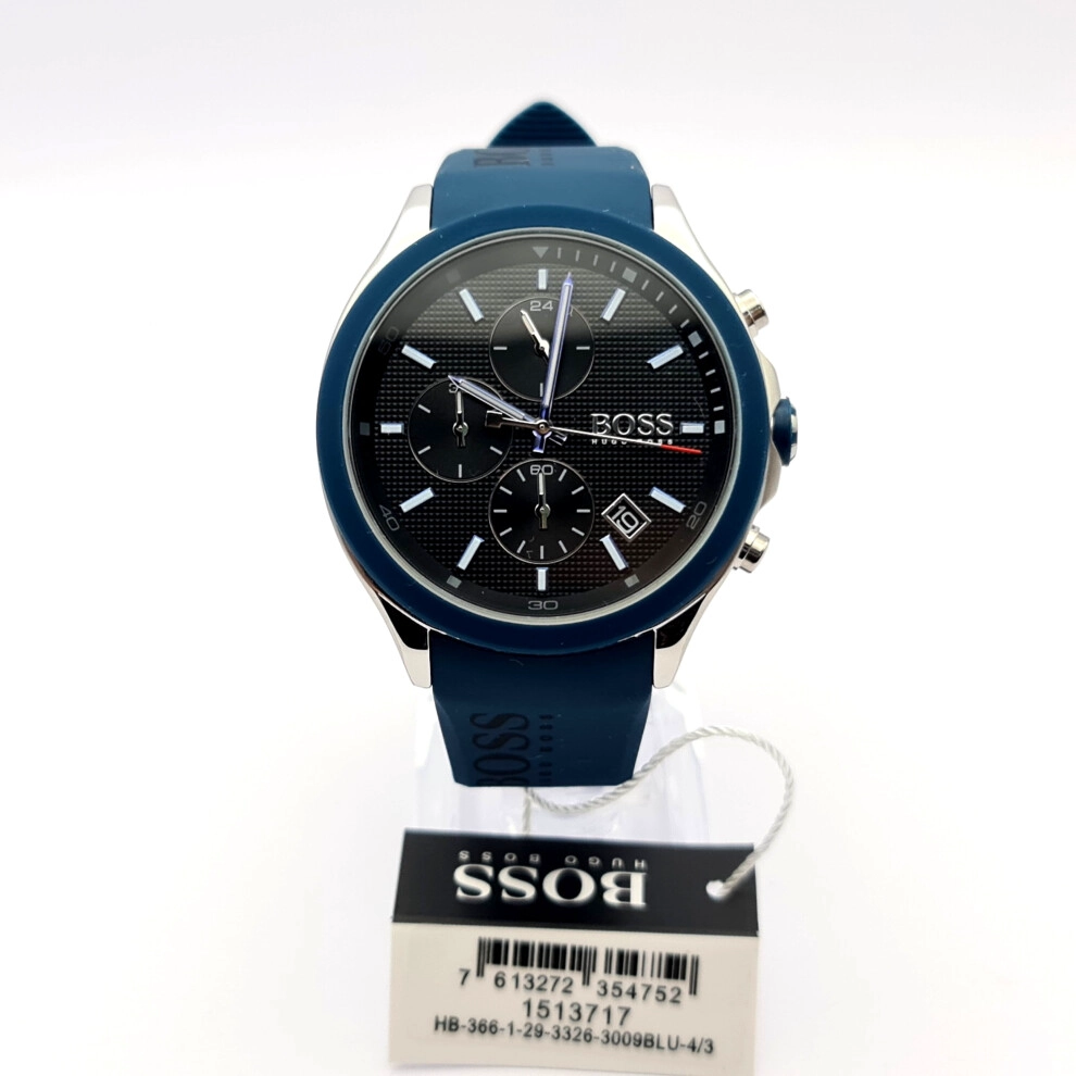 - NEW GENUINE HUGO BOSS VELOCITY 1513717 SILICONE BLUE STRAP BLACK DIAL MENS WATCH
